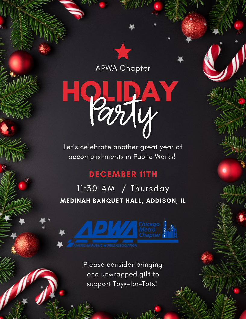 Ring in the holidays with the best Chapter of the APWA! Please consider bringing one unwrapped gift to support Toys for Tots!